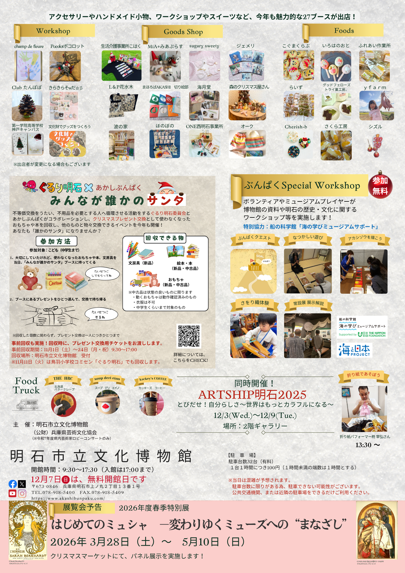 毎年たくさんの方々でにぎわう明石市立文化博物館クリスマスマーケット。